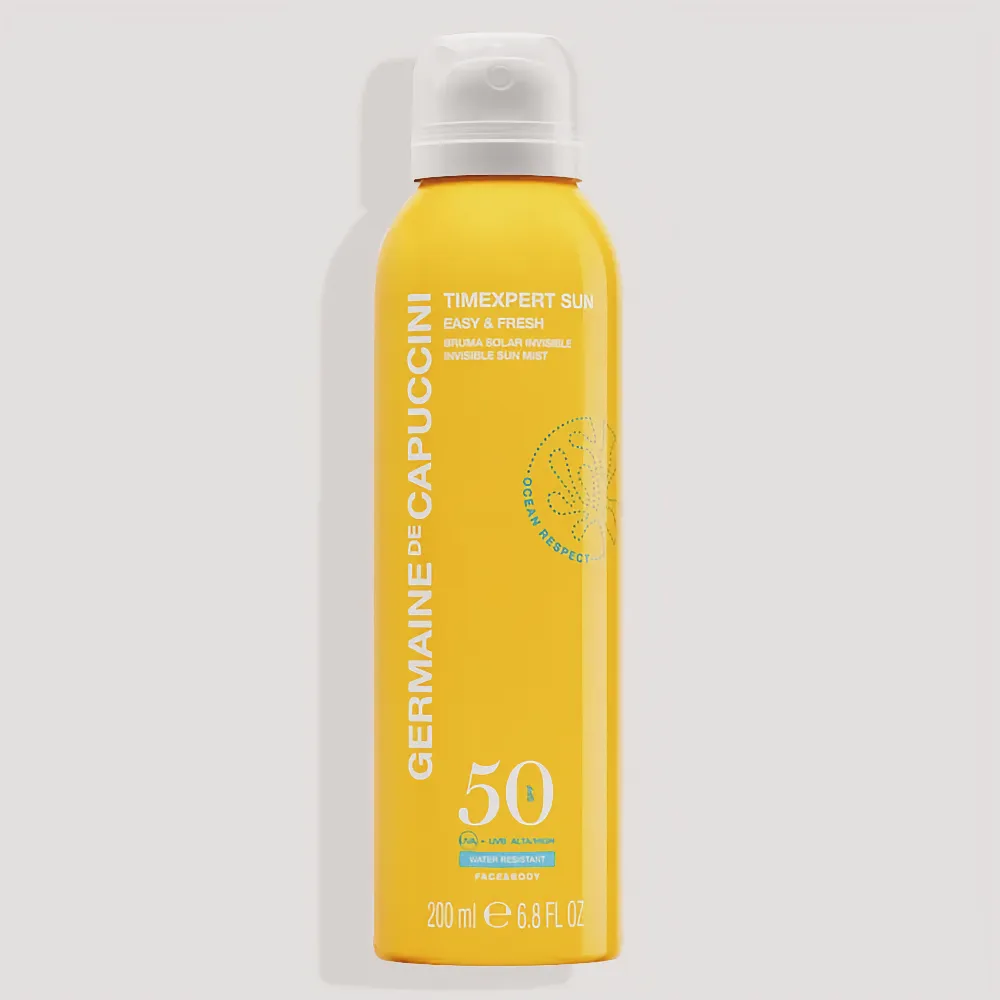 Ofrece una protección elevada contra los rayos UVA y UVB al tiempo que brinda propiedades calmantes y antioxidantes. Su textura ultraligera se pulveriza de manera uniforme sobre la piel, proporcionando una sensación refrescante muy agradable. La fórmula es resistente al agua y amigable con los océanos.